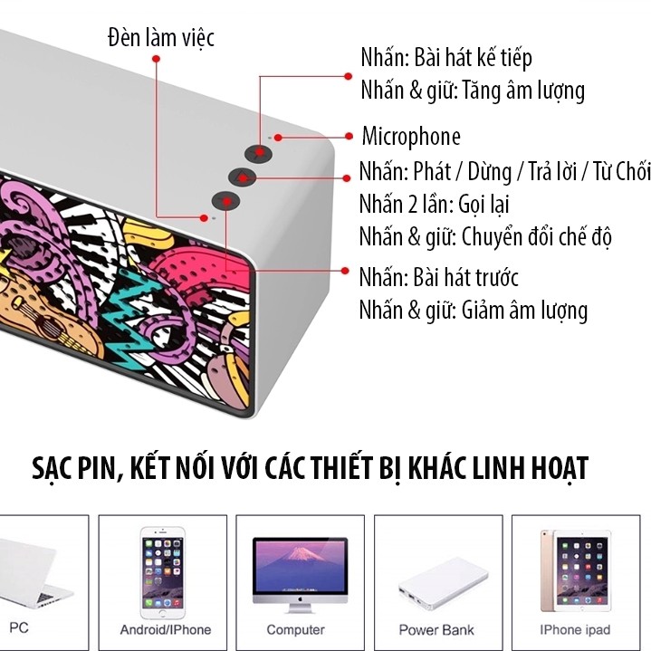Giới thiệu [Mã ELHACE giảm 4% đơn 300K] Loa Bluetooth F2 Wireless Speaker Họa Tiết PKCB - Hàng Chính Hãng