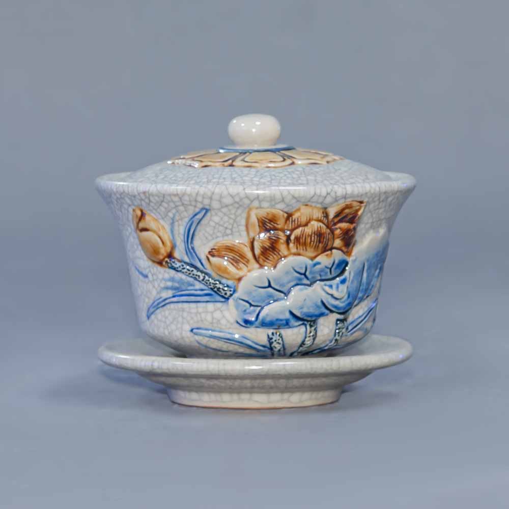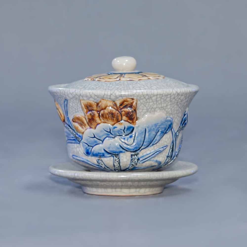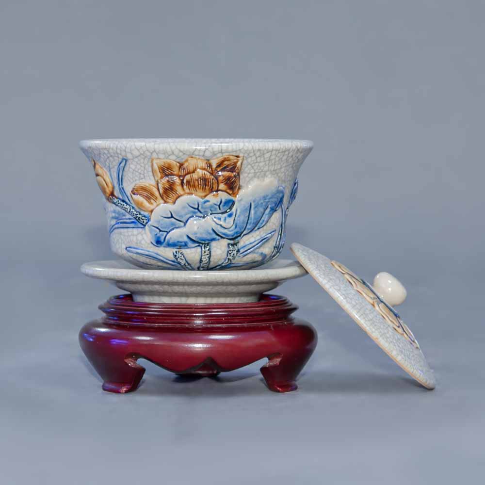 Giới thiệu Bát nước men Rạn Đắp Nổi họa tiết SEN, đồ thờ cúng Phùng Gia - Gốm sứ Bát Tràng cao cấp