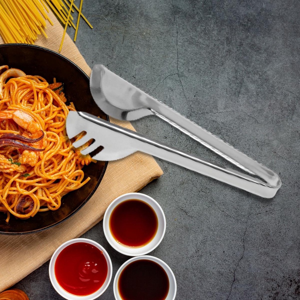 - Kẹp gắp được làm từ chất liệu thép không gỉ cao cấp, có thể sử dụng ở nhiệt độ cao thấp khác nhau, giúp thức ăn được kẹp chặt bằng một lực vừa đủ, kể cả khi thức ăn có kích thước lớn mà không làm nát nó.