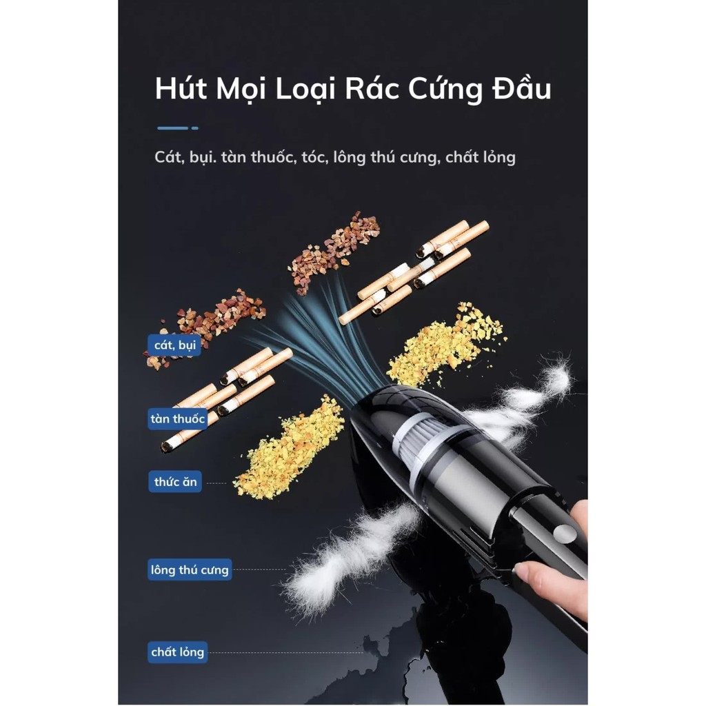 Sản Phẩm: Máy hút bụi cầm tay mini không dây hút bụi ô tô oto