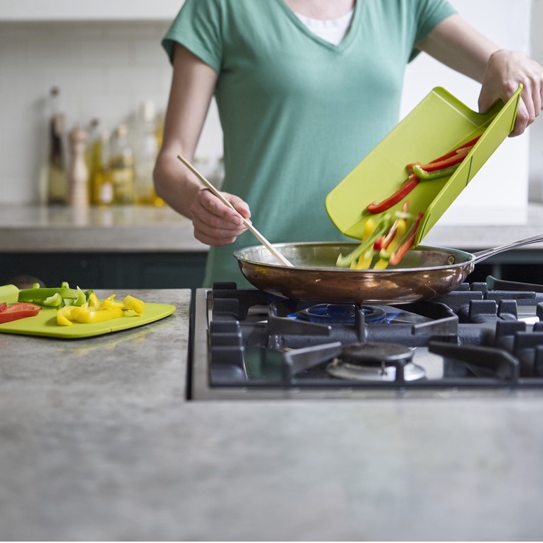 Những chiếc thớt gấp thông minh này giúp bạn dễ dàng chuyển thực phẩm đã cắt nhỏ vào nồi hoặc chảo mà không bị rơi vãi.