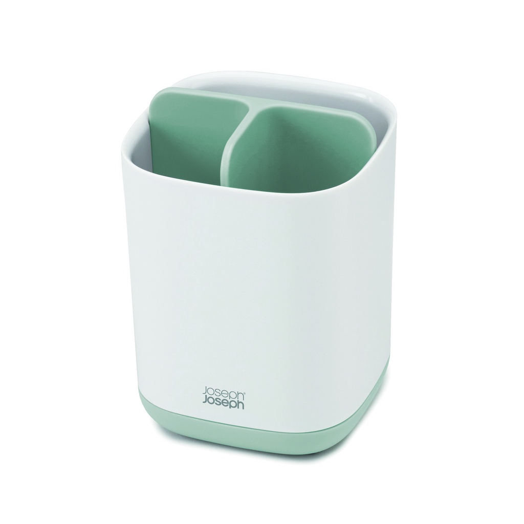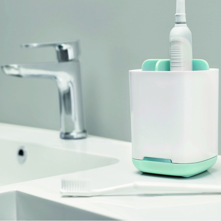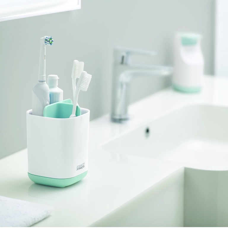 These toothbrush caddies have different sections for organising a variety of oral care items such as manual or electric toothbrushes and toothpaste tubes.