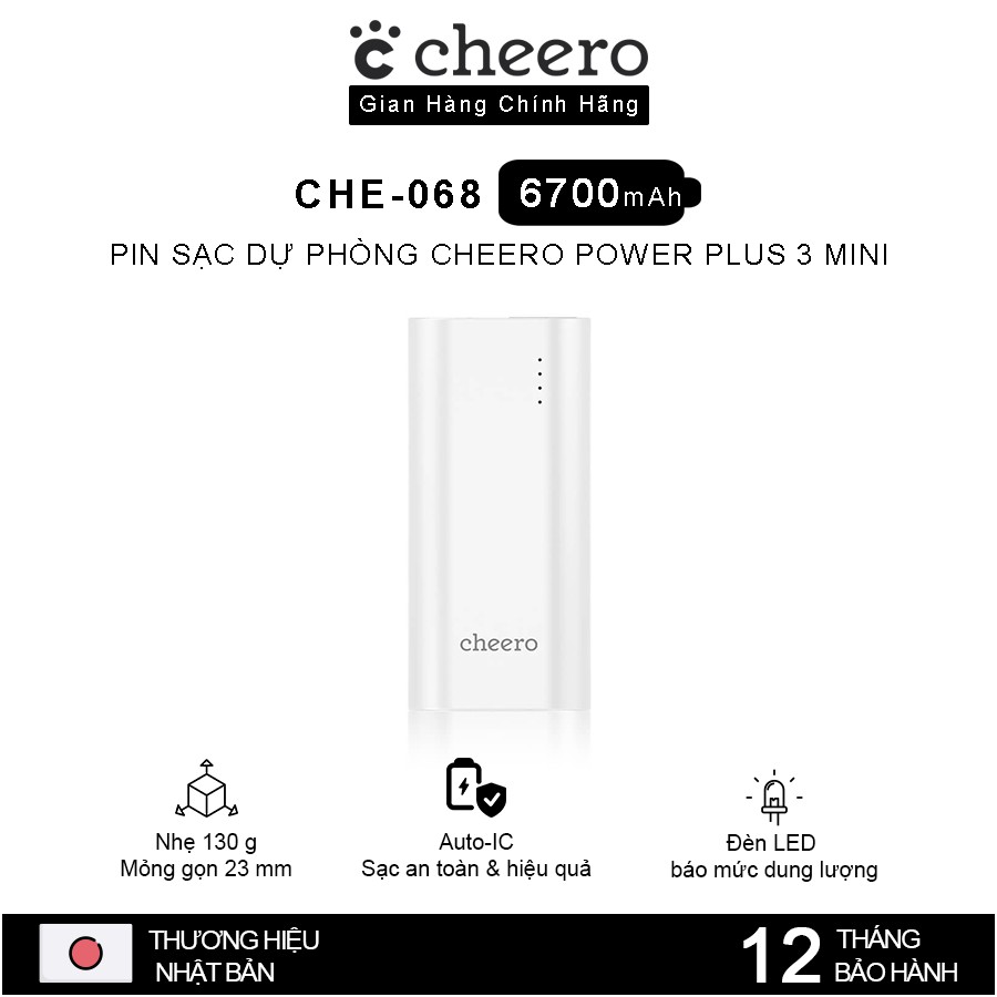 Điện Thoại & Phụ Kiện > Phụ kiện > Sạc dự phòng & Pin > Sạc dự phòng || [Mã BMBAU50 giảm 50K đơn 150K] Pin Sạc Dự Phòng Cheero Power Plus 3 mini CHE-068 6700mAh - Hàng Chính HãngCòn hàng