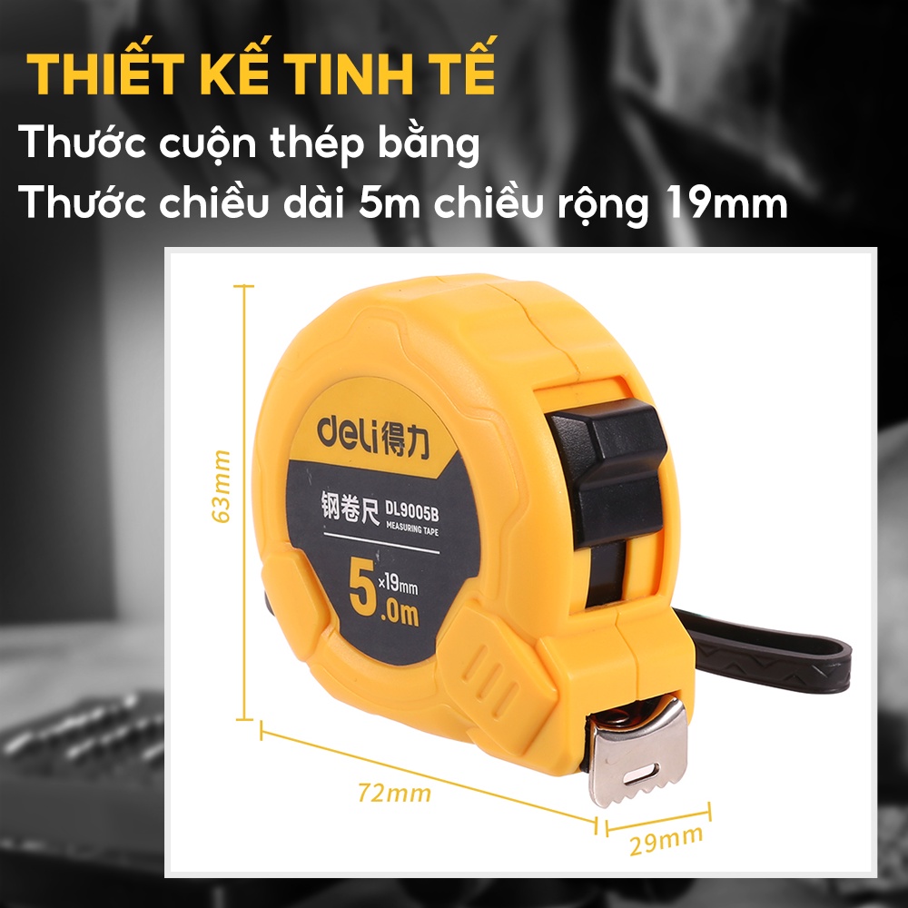 Sản phẩm bao gồm: 1 Thước cuộn thép 3mx16mm DL9003B hiệu Deli