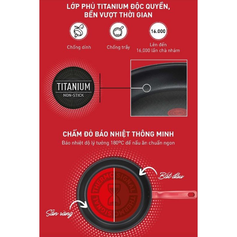 - Lớp phủ Titanium nonstick độc quyền mang lại khả năng chống dính tuyệt vời và độ bền vượt trội, có thể sử dụng ít dầu khi nấu ăn, bền chắc với hơn 16,000 lần chà nhám.