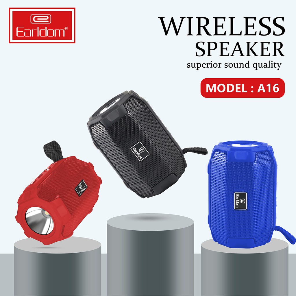 + Loa blutooth không dây Earldom A16 có 3 màu sắc gồm: đỏ, xanh và đen