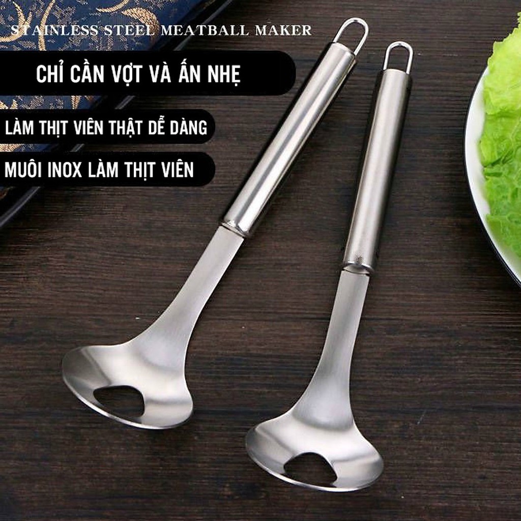 THÌA NẶN THỊT VIÊN, CÁ VIÊN INOX CAO CẤP SIÊU BỀN SIÊU TIỆN DỤNGChưa bao giờ việc làm món mọc với thịt viên lại dễ dàng đến vậy! Không cần phải cho tay vào nặn nặn xoa xoa nữa nhé các chị em! Trẻ em cũng có thể tự làm món mọc hay thịt viên được ạ! Thìa làm bằng chất liệu inox 304 an toàn cho sức khoẻ! Có móc treo để treo rất tiện lợi