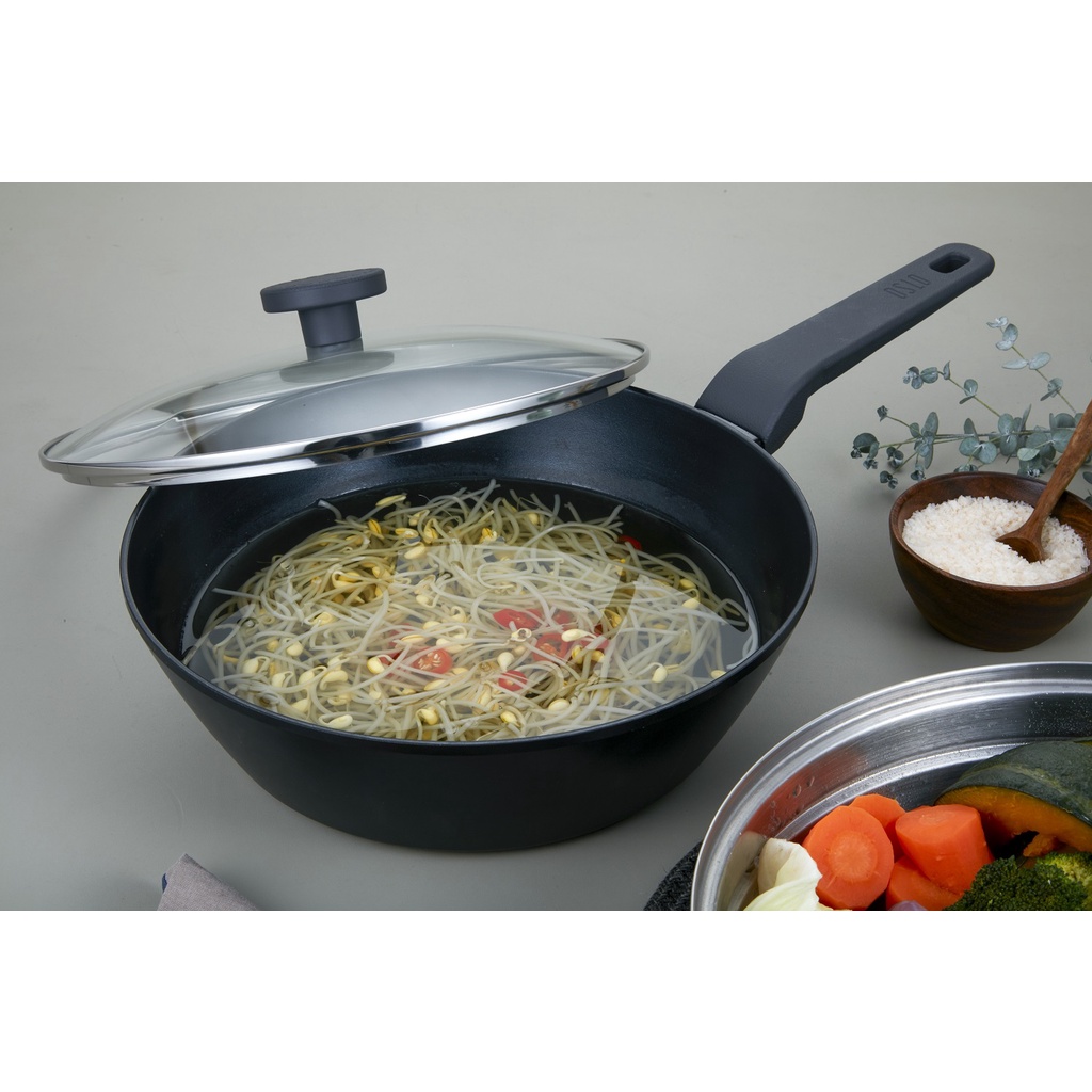 Chảo sâu lòng nhôm đúc chống dính kèm nắp kính Oslo Nord Hàn Quốc - Size 28cm