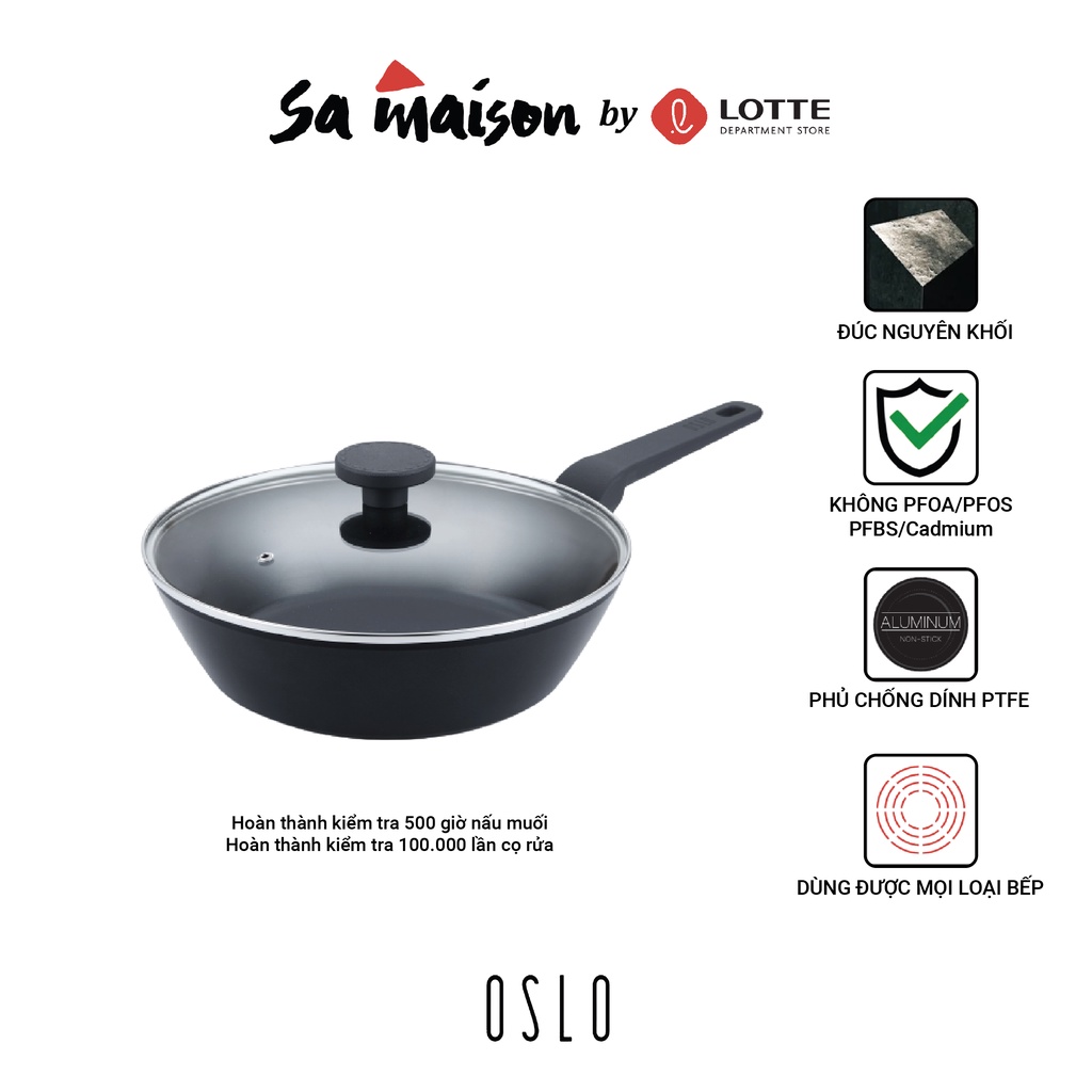 Nhà cửa & Đời sống > Dụng cụ nhà bếp > Chảo || Chảo sâu lòng nhôm đúc chống dính kèm nắp kính Oslo Nord Hàn Quốc - Size 28cmCòn hàng
