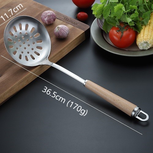 Set Vá đặc, Vá lỗ, Xẻng đặc, Xẻng lỗ inox Sa Maison cán gỗ cao cấp