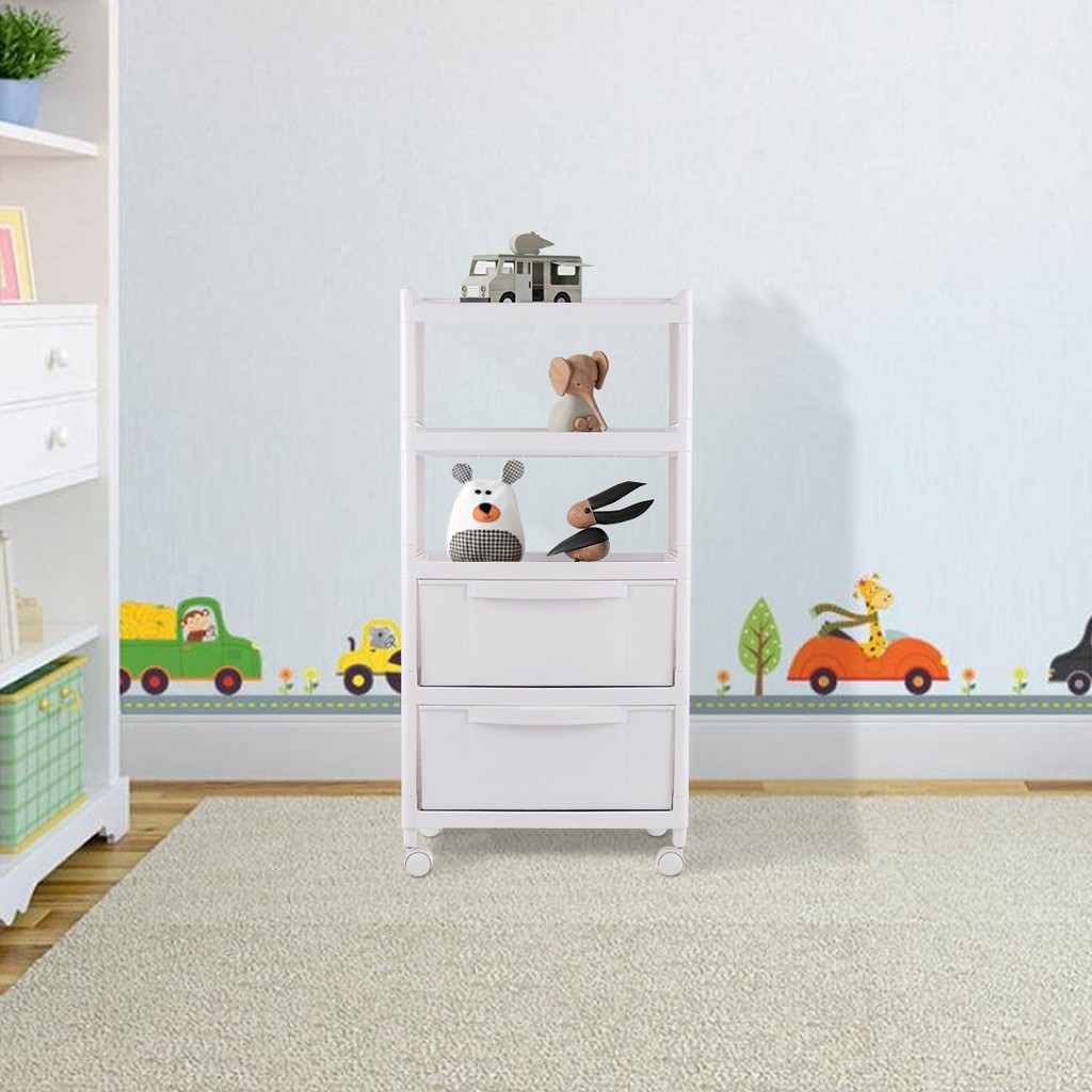 HomeBase API Kệ nhựa 4 tầng có 2 ngăn kéo Thái Lan W48xD30xH98 Cm Trắng