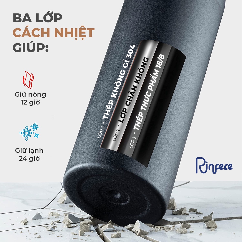 Nhà cửa & Đời sống > Bộ đồ bàn ăn > Bình nước & phụ kiện || [Mã BMBAU50 giảm 7% đơn 150K] Bình Giữ Nhiệt Rinfere, Với Miệng Rộng, Nắp Quai Cầm - Nhiều Kích Cỡ Và Màu SắcCòn hàng