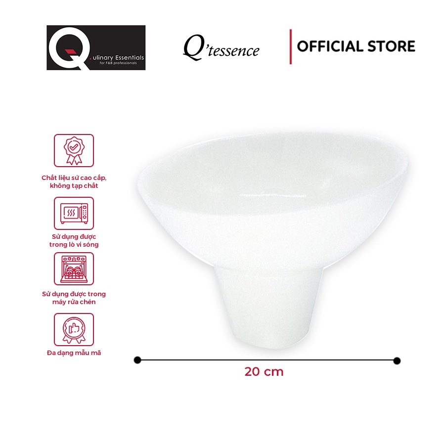 TÍNH NĂNG SẢN PHẨM- Tô Sứ Tròn Có Chân Đế Q'tessence Màu Trắng Đường Kính 20Cm được làm từ sứ cao cấp, không chứa tạp chất, an toàn tuyệt đốt cho sức khỏe người dùng.