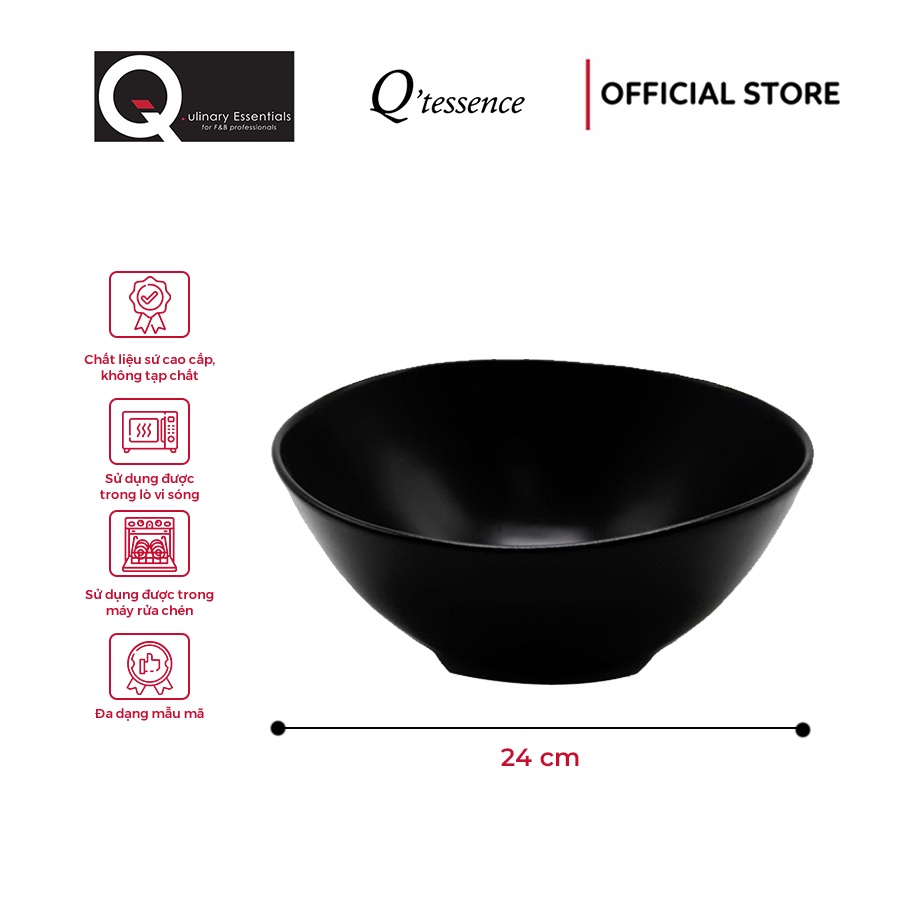 TÍNH NĂNG SẢN PHẨM- Tô Sứ Q'tessence Màu Đen Đường Kính 24Cm được làm từ sứ cao cấp, không chứa tạp chất, an toàn tuyệt đốt cho sức khỏe người dùng.