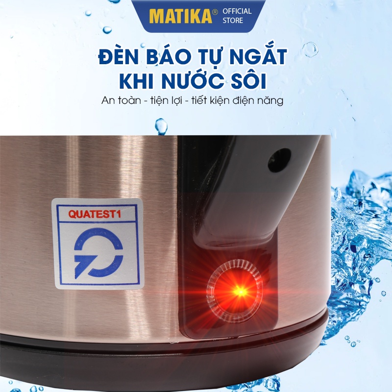 - Bình đun nước Matika MTK-36 công suất hoạt động 1500W cùng mâm nhiệt cao cấp giúp đun sôi nhanh chóng, tiết kiệm điện năng và thời gian hiệu quả.