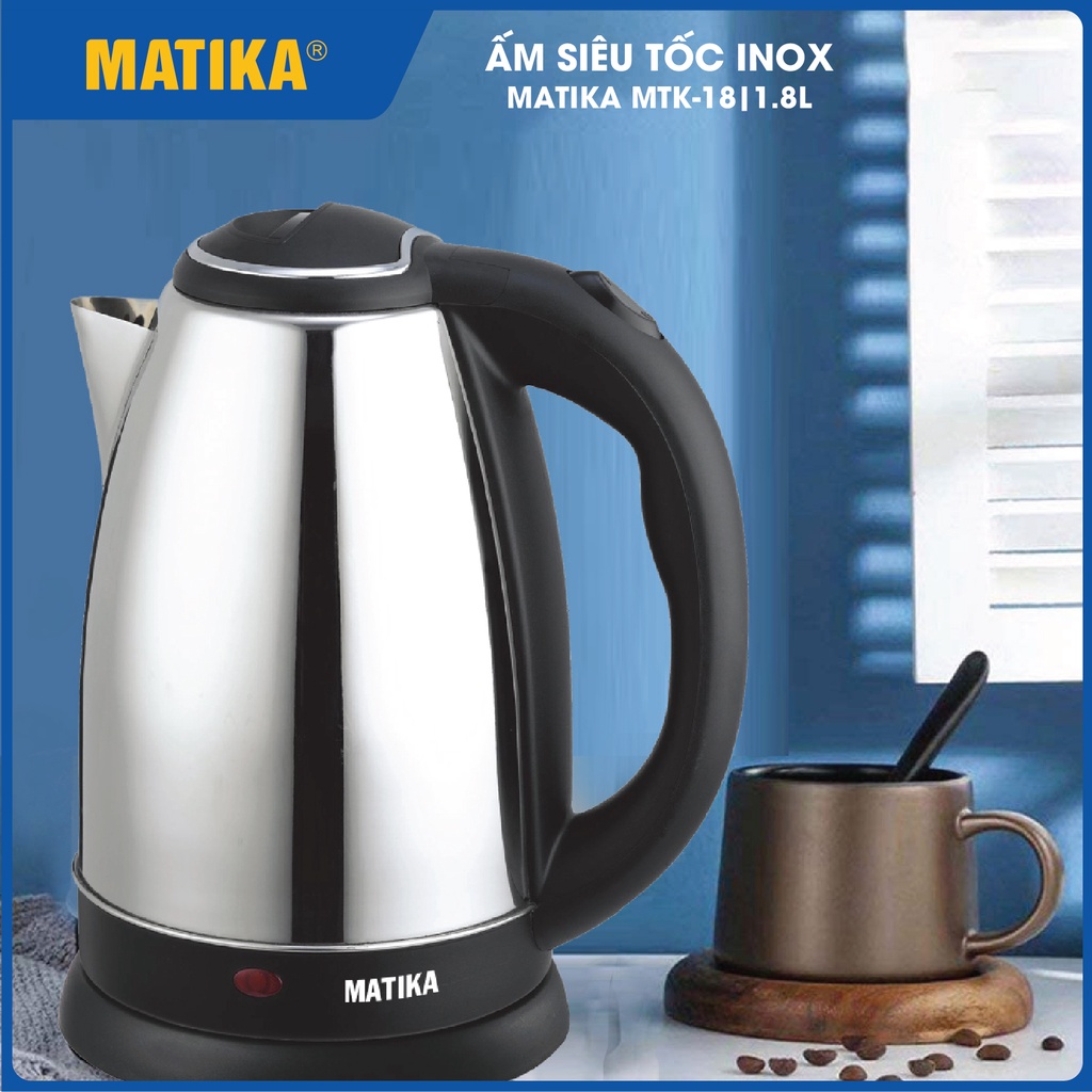 Ấm Siêu Tốc MATIKA Inox 1.8L MTK-18Ấm siêu tốc Matika MTK-18 kiểu dáng gọn nhẹ, dung tích 1.8L, công suất 1500W đun sôi nước thần tốc, đáp ứng nhanh nhu cầu nước nóng cho người dùng là sản phẩm tiện ích mà mỗi gia đình nên sở hữu.