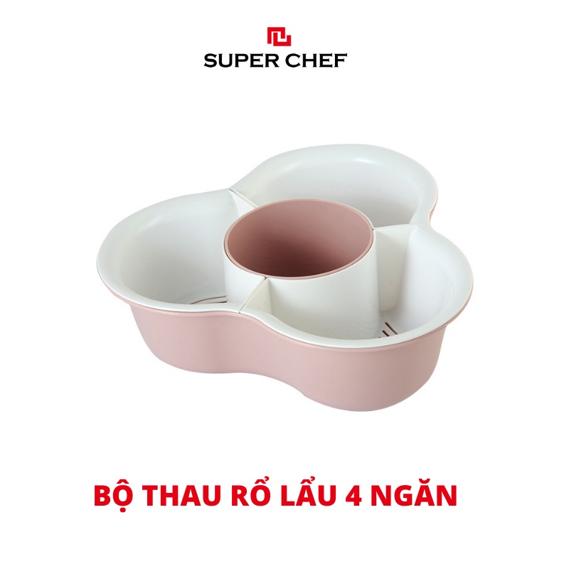 [Mã BMBAU50 giảm 7% đơn 99K] Bộ Thau Rổ 4 Ngăn Ăn Lẩu Super Chef Siêu Tiện Lợi, Sang Trong