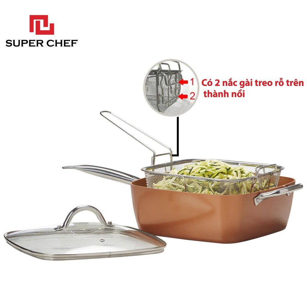 ♻️♻️ CAM KẾT HÀNG CHÍNH HÃNG, CHẤT LƯỢNG TUYỆT VỜI, BAO ĐỔI TRẢ TRONG 7 NGÀY NẾU SẢN PHẨM LỖI. MỌI CHI TIẾT LIÊN HỆ SUPER CHEF ĐỂ ĐƯỢC TƯ VẤN HỖ TRỢ ♻️♻️Nếu bạn đang tìm kiếm 1 nồi hoặc chảo có thể vừa chế biến món chiên, món xào, món hầm, luộc hay hấp,... thì không đâu khác BỘ NỒI CHỐNG DÍNH VUÔNG VÀ RỔ INOX SUPER CHEF sẽ là sự lựa chọn hoàn hảo.