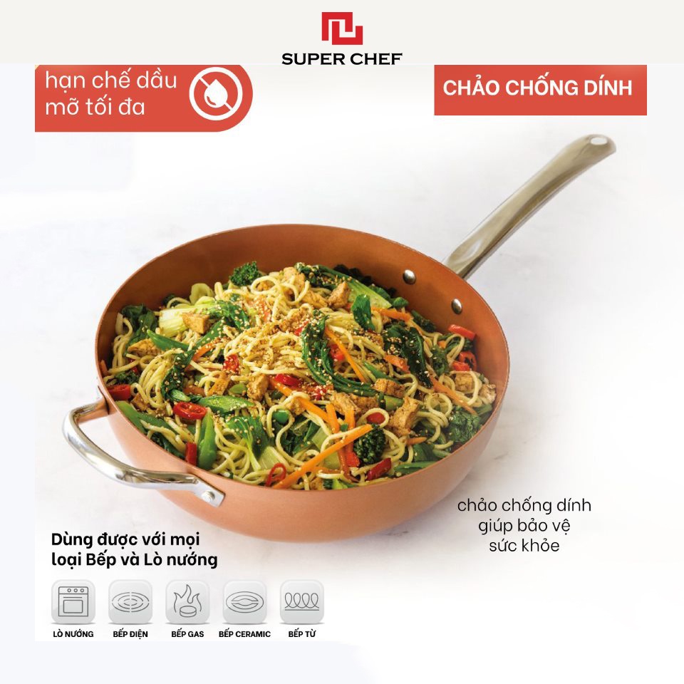 Giới thiệu [Mã BMBAU50 giảm 7% đơn 99K] Chảo Xào Chống Dính Bếp Từ Super Chef Siêu Bền