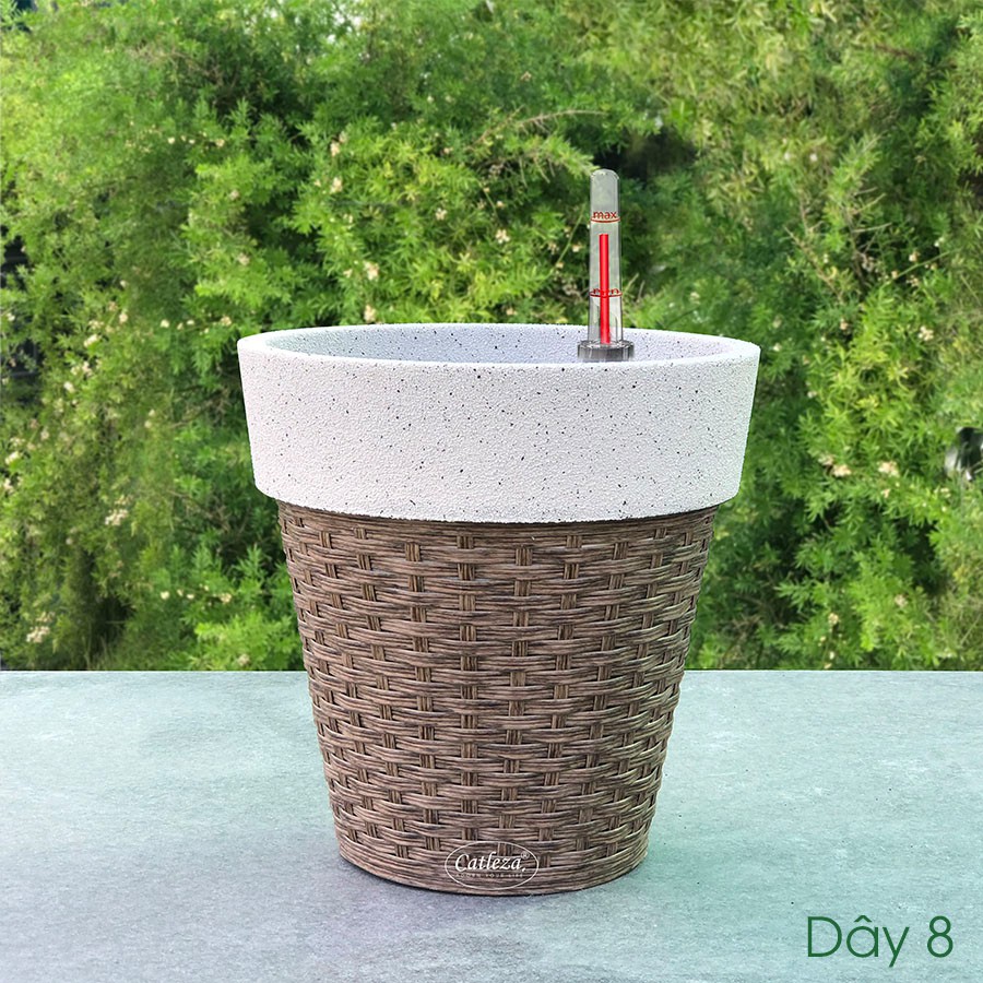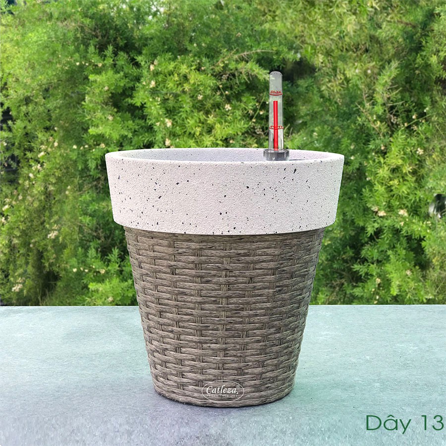 ~ Chậu cây tự dưỡng sơn cát trắng đan catleza được làm từ nhựa ABS chống chịu tốt với va đập, không thấm nước, dùng cho cả trong nhà và ngoài trời, đa dạng kích cỡ cho nhiều nhu cầu sử dụng khác nhau.