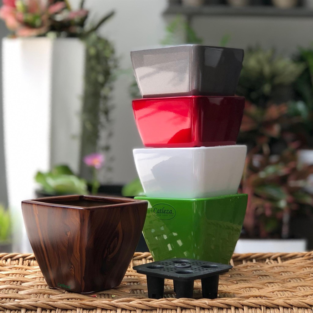 Chậu Nhựa Trồng Cây Thông Minh CATLEZA Sơn Vuông Bầu Không Ống Thăm Dò Mực Nước 20x20x18 cm