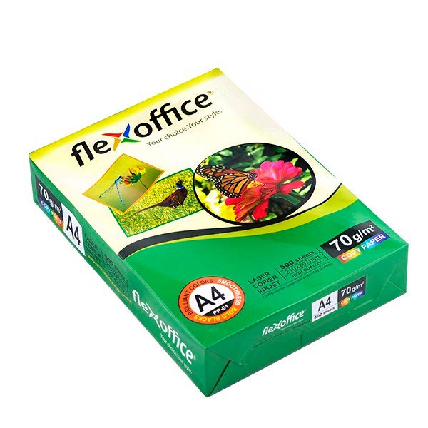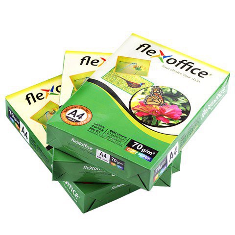 Giấy in văn phòng chất lượng cao , bề mặt nhẵn tuyệt vời , mau khô mực , thích hợp cho các loại máy in phun , máy in laser , máy fax laser , máy photocopy… Giấy không bị bụi giúp kéo dài tuổi thọ các thiết bị in , photocopy . Giấy in Flexoffice được sản xuất và đóng gói theo tiêu chuẩn, dây chuyền thiết bị hiện đại, chuyên dung trong các văn phòng, công ty , trường học. Với khả năng đáp ứng in ấn , photocopy tốt. Thùng giấy được làm từ chất liệu tốt , tiện lợi cho việc vận chuyển và tái sử dụng vào việc lưu trữ tài liệu văn phòng. Đặc điểm : - Đóng gói đủ 500 tờ / 1 ream . Ream giấy được bao gói chặt , mặt cắt ream phẳng, các tờ không bị dính nhau . - Chất lượng : Đẹp, trắng, mịn, láng. - Quy cách : Khổ A4 (500sheets/ Ream). - Định lượng : 70gsm. - Sản xuất tại : Việt Nam. Đóng gói: 500 tờ/ream, 5 ream/thùng ( Kích thước thùng 305x220x230 mm )
