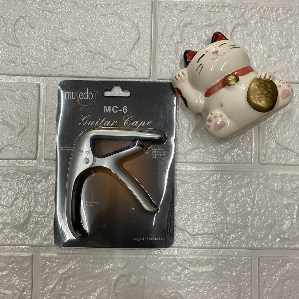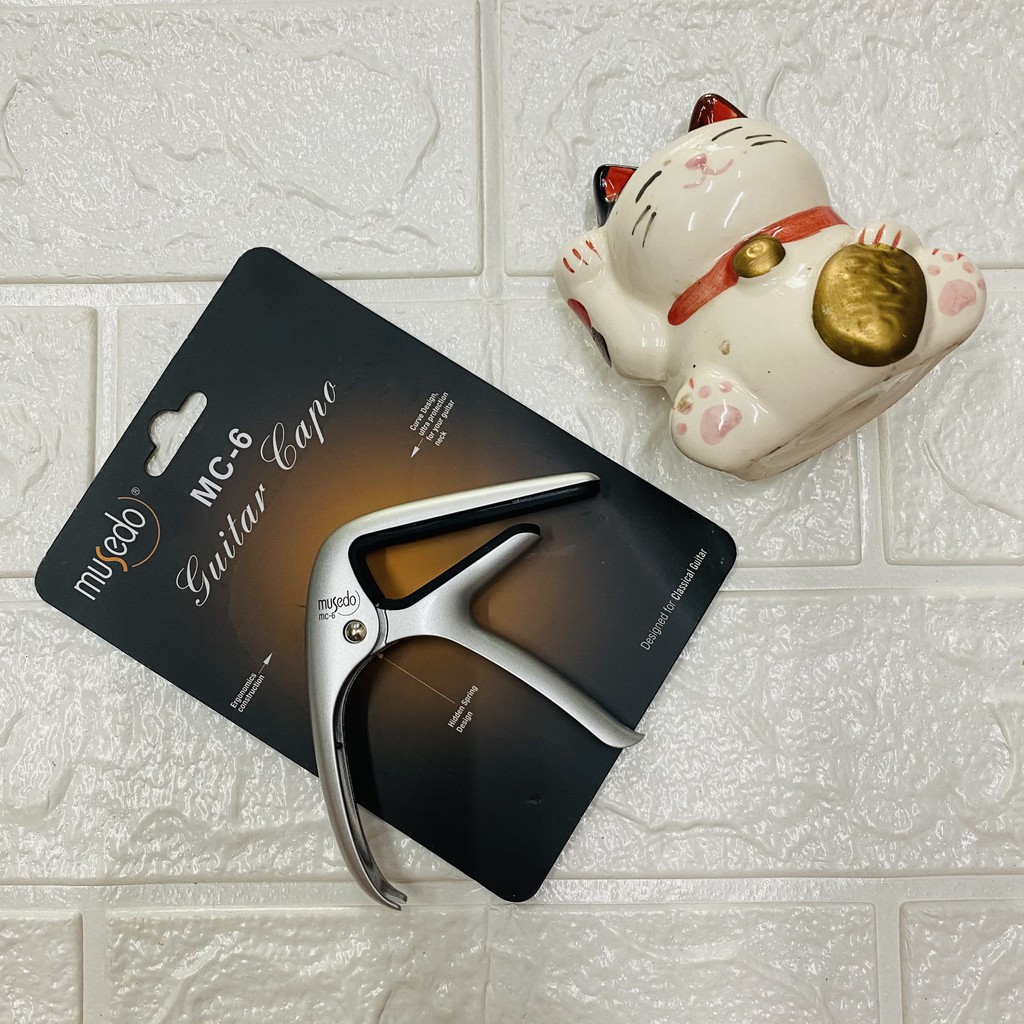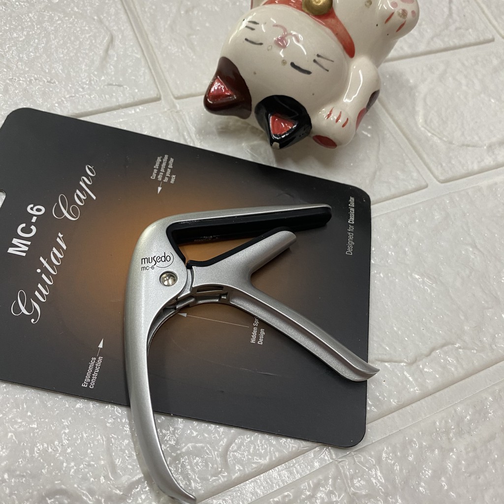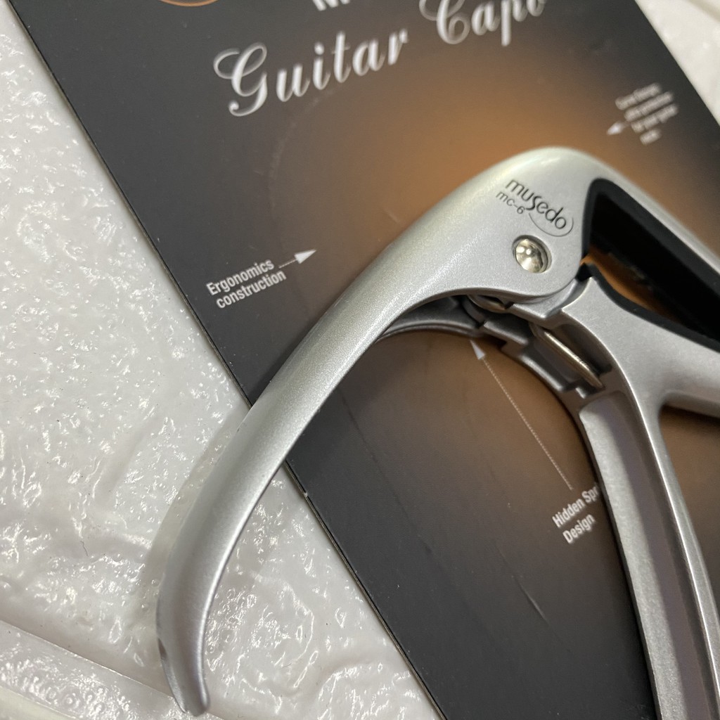 Musedo MC6 MC6 là mẫu Capo cao cấp nhất của dòng Capo Musedo (MC5 dùng cho đàn dây sắt,MC6 dùng cho đàn dây Nilon):-Với chất liệu hợp kim màu bạc,cho sản phẩm một vẻ sang chảnh và bắt mắt.