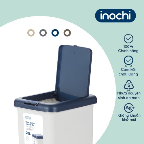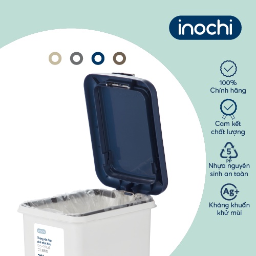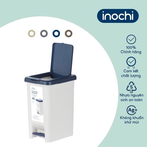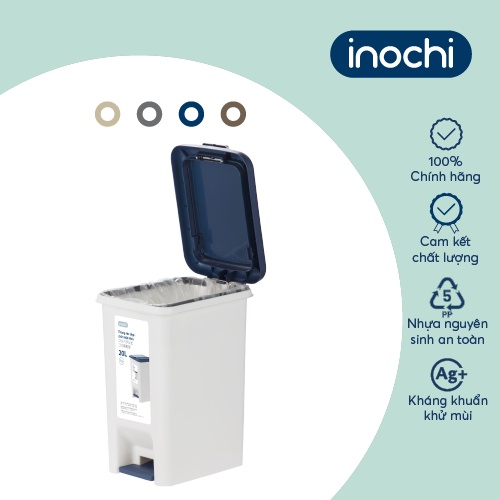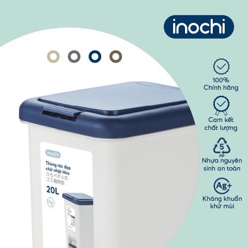 Thùng rác đạp chữ nhật INochi - Hiro 20L (kèm ruột) Thân Trắng kem + Nắp Ghi/ Xanh/ Nâu/ Be