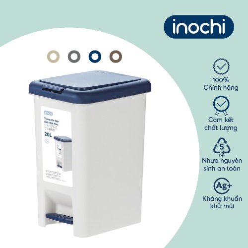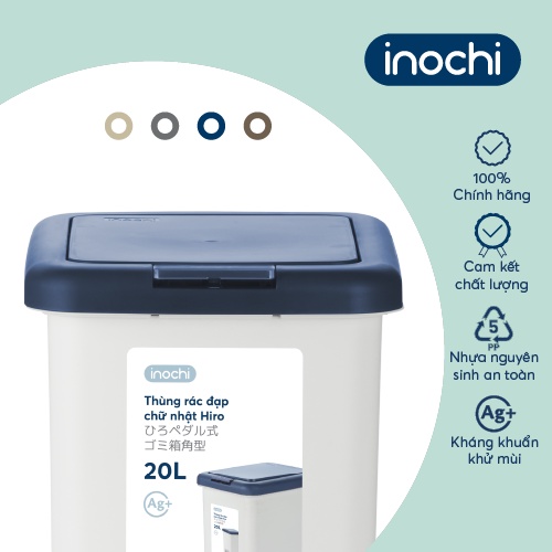 Giới thiệu Thùng rác đạp chữ nhật INochi - Hiro 20L (kèm ruột) Thân Trắng kem + Nắp Ghi/ Xanh/ Nâu/ Be