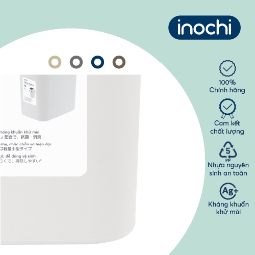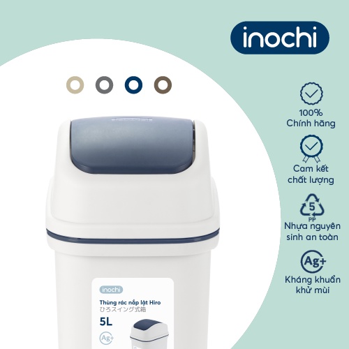 Giới thiệu Thùng rác nắp lật Inochi 5L (kèm ruột) Thân Trắng kem + Nắp Ghi sữa/ Xanh chàm/ Nâu café/ Be sữa