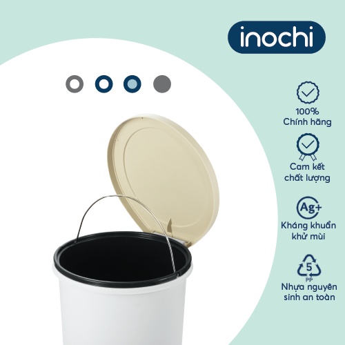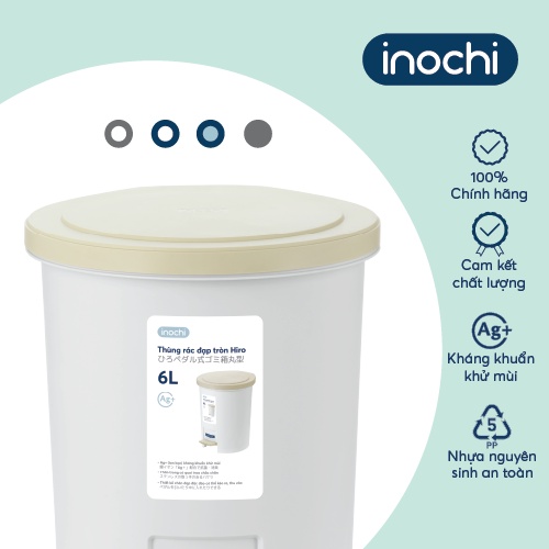 Giới thiệu Thùng rác đạp tròn Inochi - Hiro 6L( kèm ruột) Thân Ghi sữa+ Nắp Ghi sữa/Xanh nhật