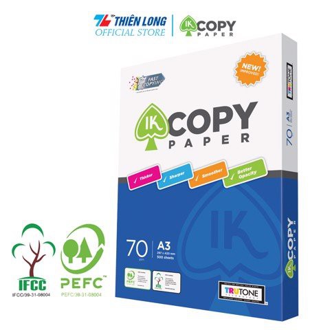 Văn Phòng Phẩm > Sổ & Giấy Các Loại > Giấy In || [Mã BMBAU50 giảm 7% đơn 150K] [Mã BMBAU50 giảm 50K đơn 150K] Ream giấy A3 70 gsm IK Copy (500 tờ)Còn hàng