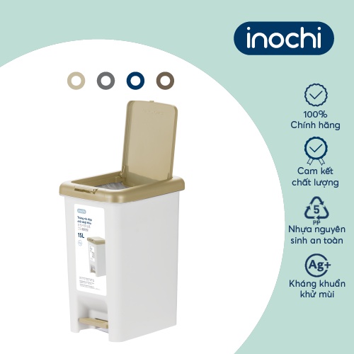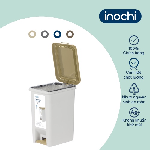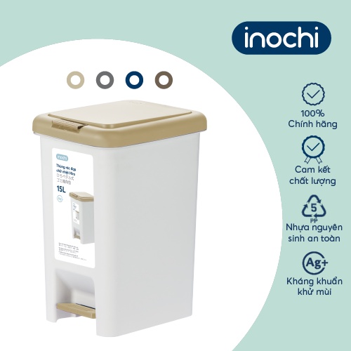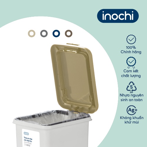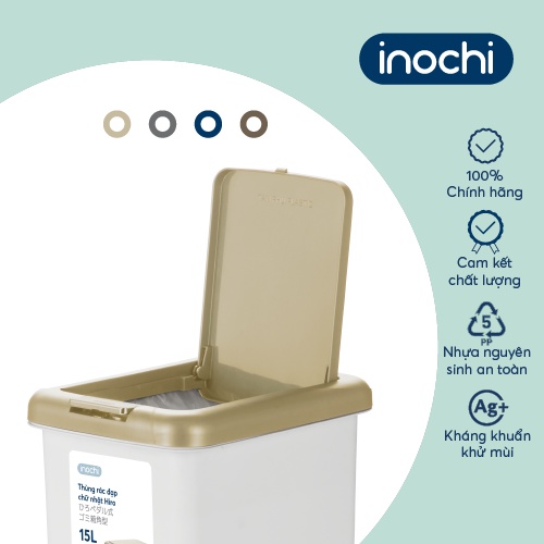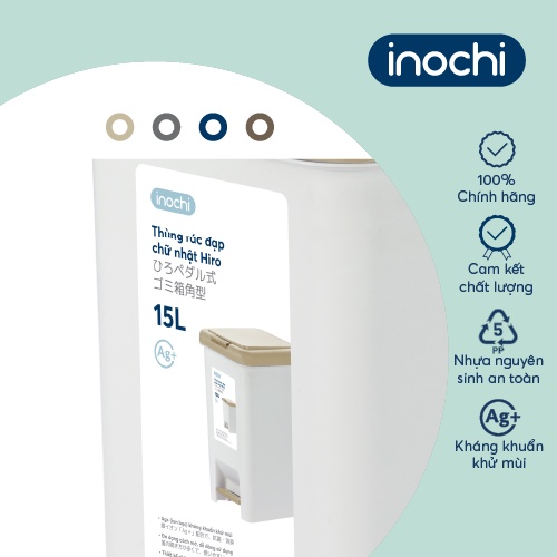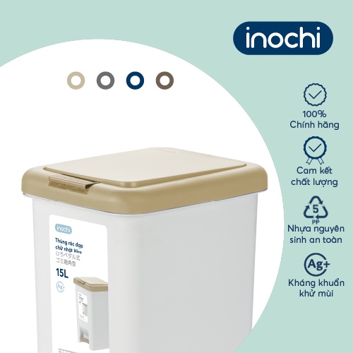 Giới thiệu Thùng rác đạp chữ nhật Inochi- Hiro 15L (loại kèm ruột) Thân màu Trắng kem+ Nắp Ghi/Xanh/Nâu/Be