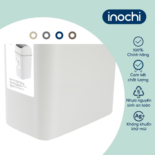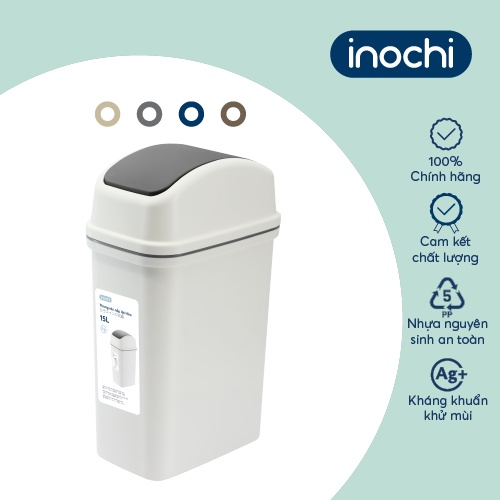 Thùng rác nắp lật Inochi - Hiro 15L (kèm ruột) Thân Trắng kem + Nắp Ghi sữa/ Xanh chàm/ Nâu café/ Be sữa