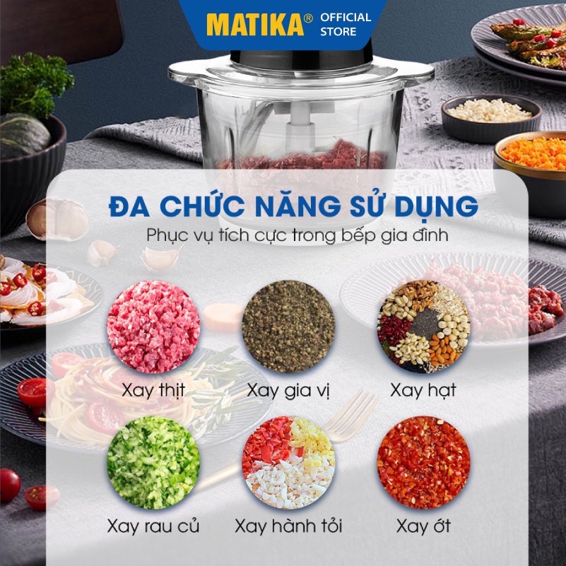 Giới thiệu [Mã BMBAU300 giảm 10% đơn 499K] Máy Xay Thịt MATIKA 2L Cối Thủy Tinh MTK3220