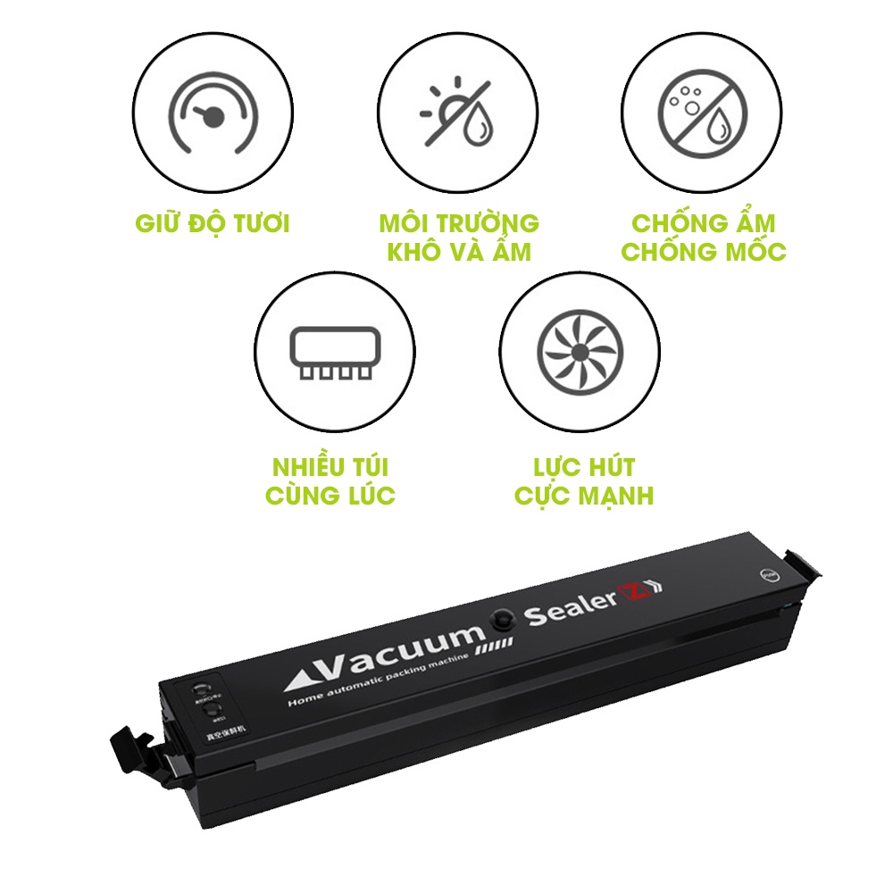 Máy hút chân không thực phẩm Vacuum Sealer sử dụng cho việc bảo quản các loại thực phẩm, tươi, khô cũng như đóng gói các loại thực phẩm khác nhau. Giúp thực phẩm tươi ngon hơn, bảo quản lâu hơn, tiết kiệm diện tích trong khoang tủ lạnh của bạn.