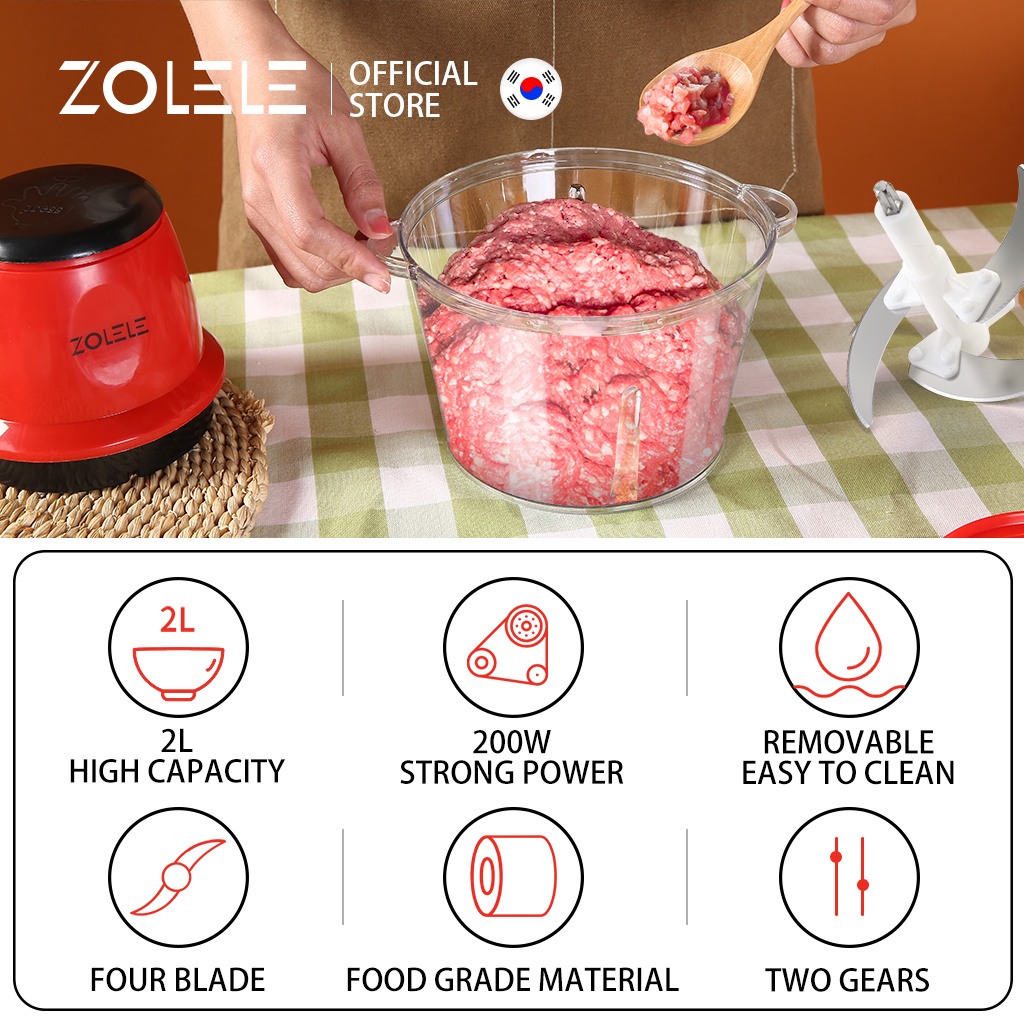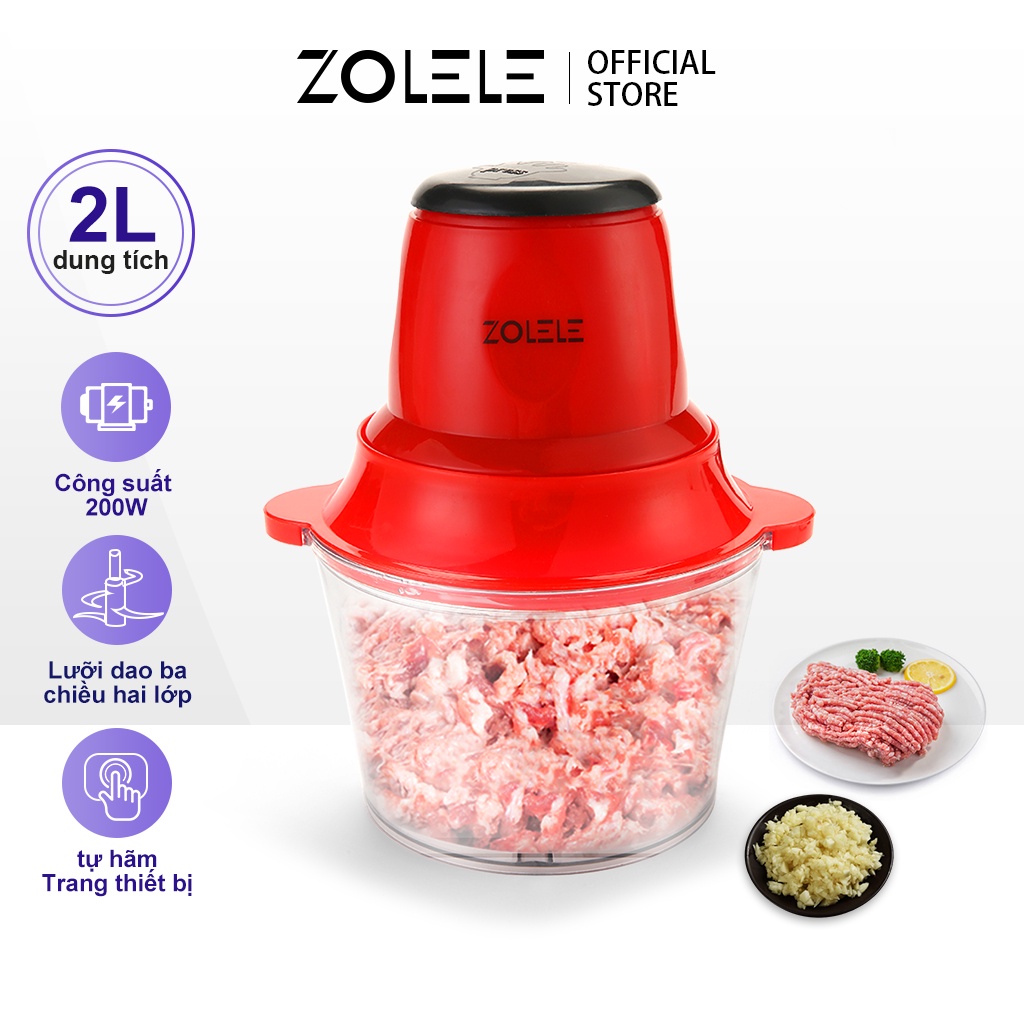 [Mã ELHADEV giảm 4% đơn 300K] Máy xay thịt ZOLELE ZD002 Bộ xử lý thực phẩm nhà bếp 2L