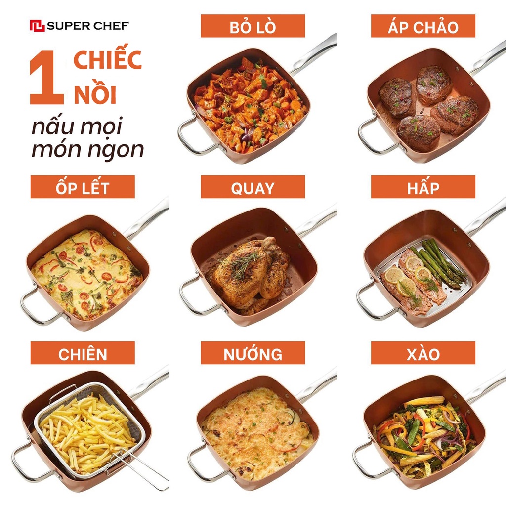 ♻️ CAM KẾT HÀNG CHÍNH HÃNG, CHẤT LƯỢNG TUYỆT VỜI, BAO ĐỔI TRẢ TRONG 7 NGÀY NẾU SẢN PHẨM LỖI. MỌI CHI TIẾT LIÊN HỆ SUPER CHEF ĐỂ ĐƯỢC TƯ VẤN HỖ TRỢ ♻️♻️Nồi vuông cán dài Super Chef vô cùng an toàn và tiện lợi nhờ vào thiết kế thông minh như: