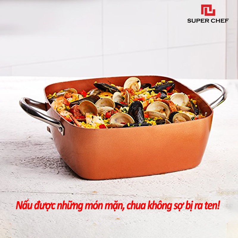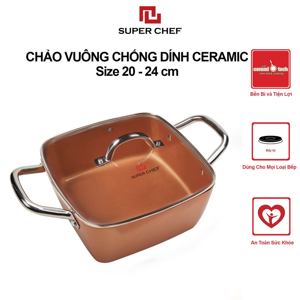NỒI VUÔNG CHỐNG DÍNH SUPER CHEF vượt trội hơn nhờ nồi được tráng 2 lớp chống dính Ceramic theo công nghệ Nhật có nhiều ưu điểm:1️⃣ Nồi chống dính phủ sứ Ceramic 100% tự nhiên, không chất độc hại như PTFE, PFOA (chất ung thư) => TUYỆT ĐỐI AN TOÀN CHO SỨC KHỎE