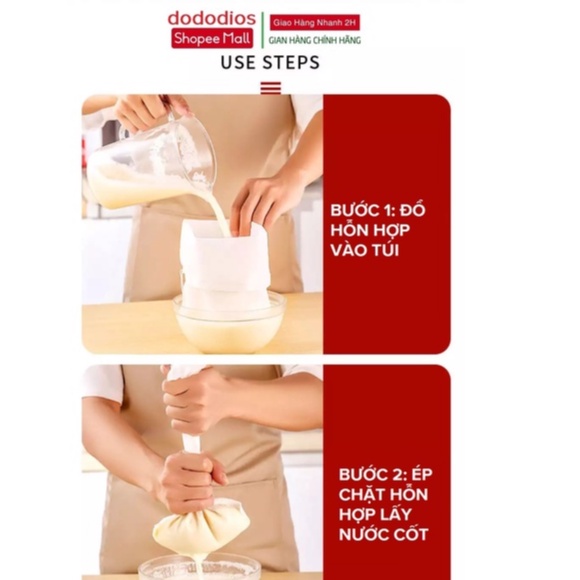 Bạn có thể dùng túi để lọc bất cứ thứ gì bạn muốn bõ bã lấy cốt: lọc sữa hạt, lọc cốt rau củ, lọc tinh dầu, lọc dầu mỡ, dầu lạc, dầu dừa, sữa chua, phomai, mật ong, lọc lá....