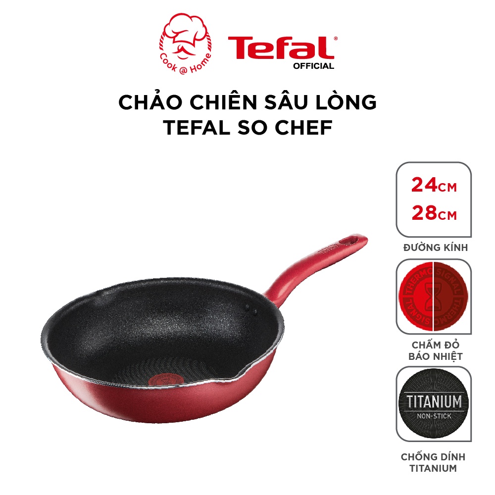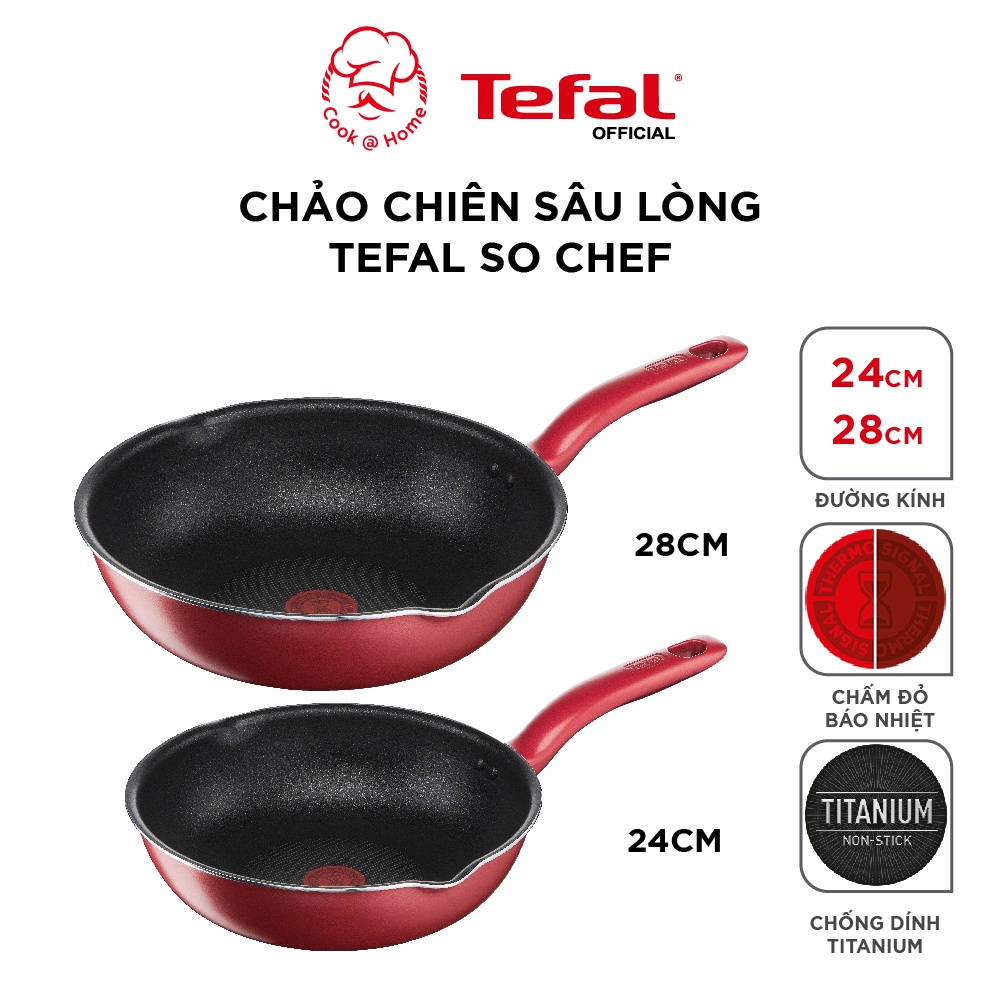 Nhà cửa & Đời sống > Dụng cụ nhà bếp > Chảo || [Mã BMINC50 giảm 10% đơn 150K] Chảo chiên sâu lòng Tefal So Chef size 24, 28cm - G1358496/G1358696Còn hàng