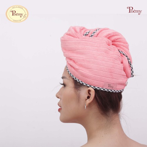 - Kích cỡ của sợi trong mũ quấn tóc Poêmy chỉ bằng 1/250 (1 phần 250) sợi tóc thấm hút nước cực tốt gấp 7 lần trọng lượng của mũ, giúp tóc mau khô và bảo vệ tối đa cho mái tóc của bạn.