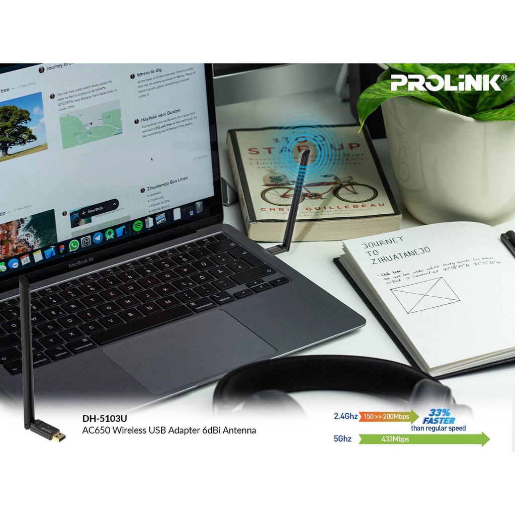 ✔️ Prolink DH-5103U AC 650 UPS USB thu sóng Wifi, với 6dBi ăng ten có khả năng nhận tín hiệu wifi trên 2 băng tần riêng biệt. Nó cho phép chọn băng tần wifi tốt nhất (băng tần 2.4 GHz để lướt web và mạng xã hội trong khi băng tần 5 GHz cho phát video trực tuyến HD và chơi game mà không gặp độ trễ.✔️ Hỗ trợ 256 QAM, công nghệ để boost tốc độ dữ liệu từ 2.4 GHz từ 150 Mbps lên 200 Mbps đạt hiệu suất 33%.