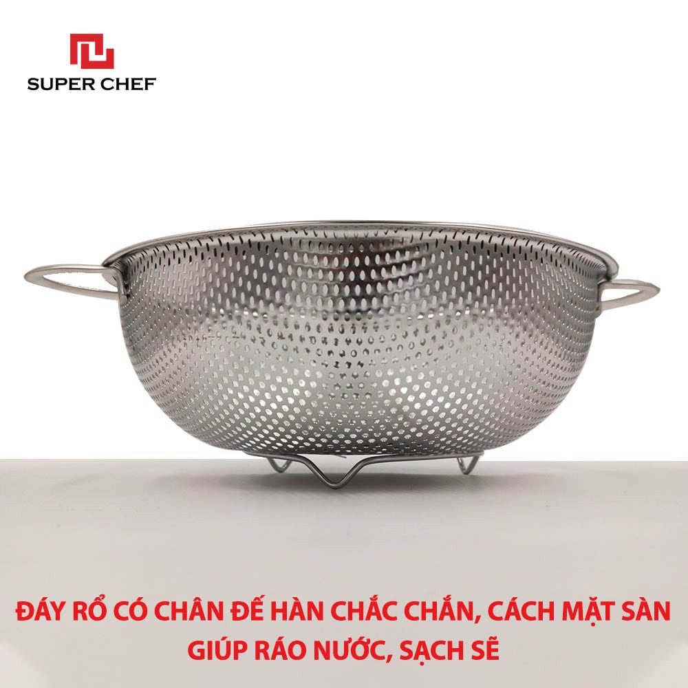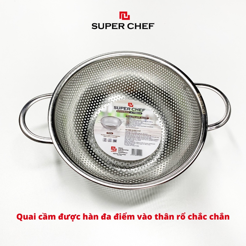 [Mã BMBAU50 giảm 7% đơn 99K] Rổ Inox 201 Dày Super Chef Không Gỉ Sét, Sáng Bóng Siêu Bền Bỉ