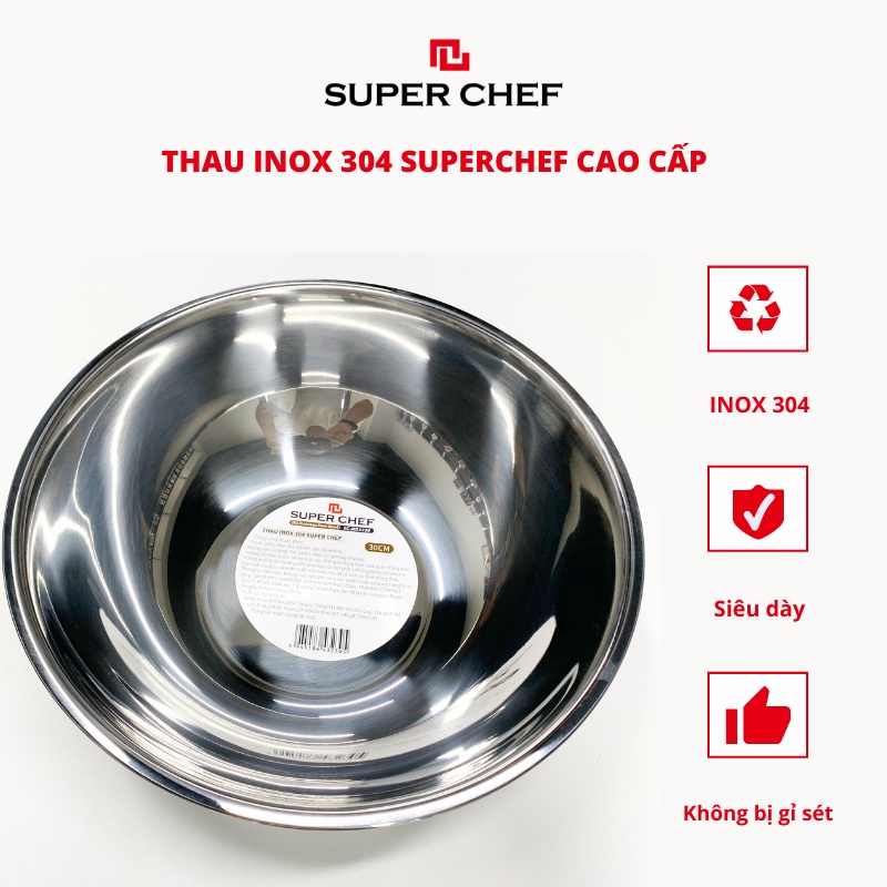 Giới thiệu [Mã BMBAU50 giảm 7% đơn 99K] Thau Inox 304 Dày Super Chef Cao Cấp Không Gỉ Sét, Sáng Bóng Siêu Bền SC_MB32