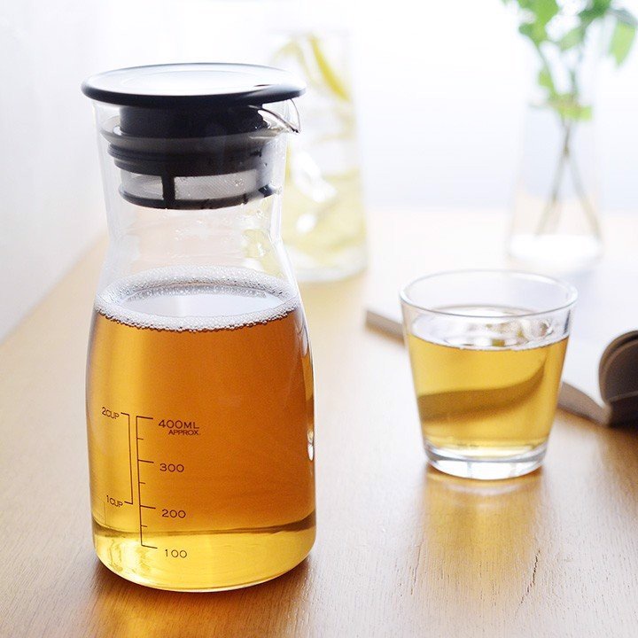 Chất liệu: Thân: thủy tinh chịu nhiệt. Nắp: nhựa PP; Vòng roăng: silicon; Lưới lọc: Polyester.