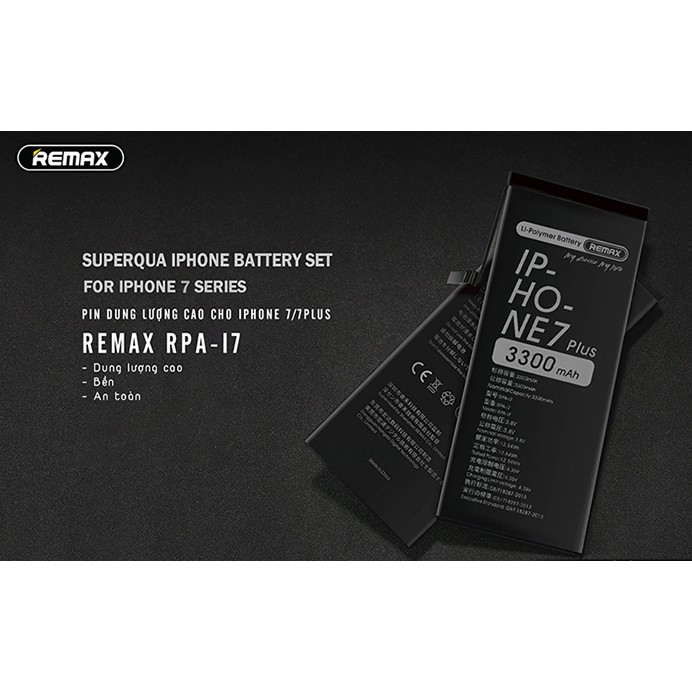 Giới thiệu [Mã BMBAU50 giảm 7% đơn 99K] Pin iPhone 7 / iPhone 7 Plus / iPhone 8 / iPhone 8 Plus Remax RPA-i7 Dung lượng cao