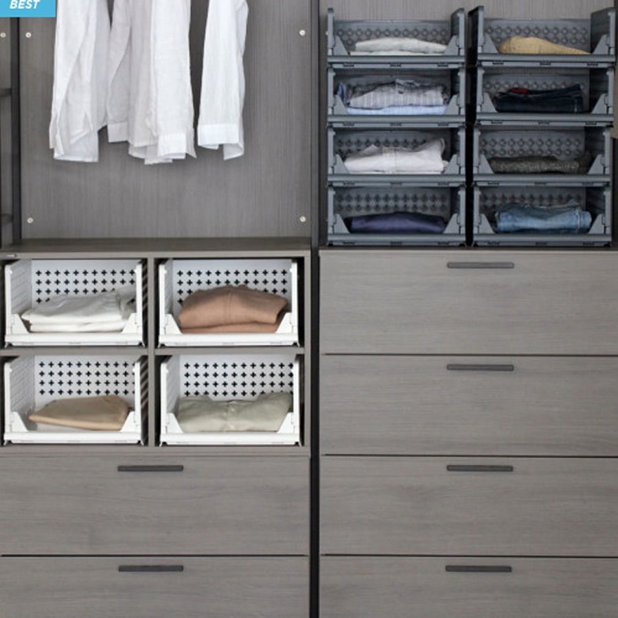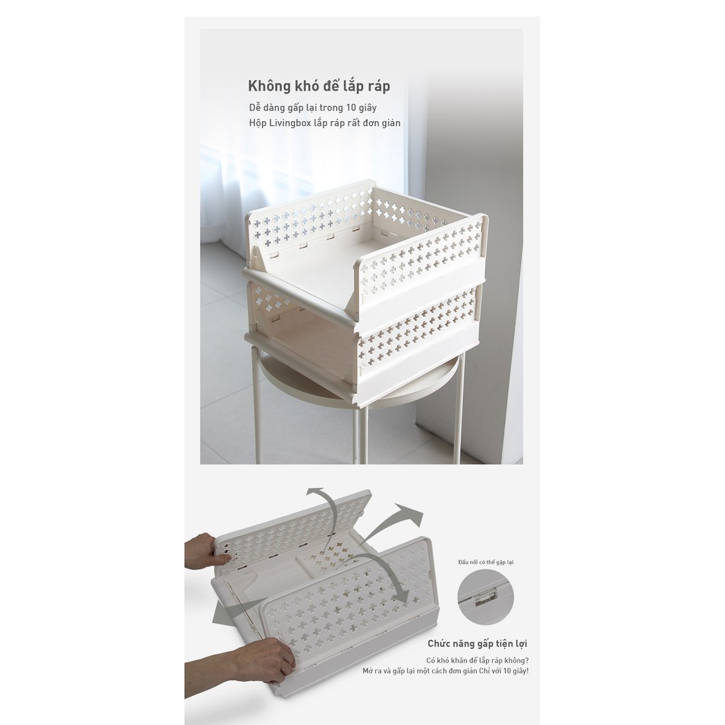 Lưu trữ mọi đồ vật thật thuận tiện. Dễ mở rộng khi gắn các hộp chồng lên nhau