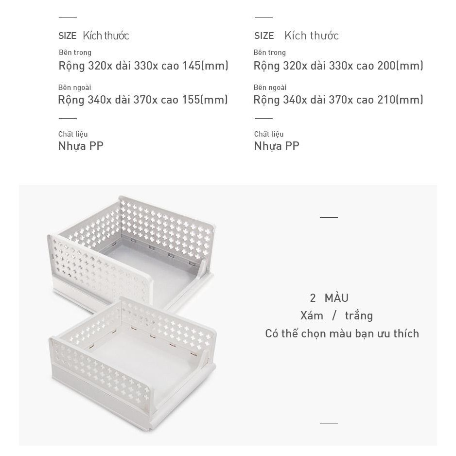 Hộp đựng đa năng/ Hộp có thể kéo ra và gấp lại đượcThông số kĩ thuật và màu sắc