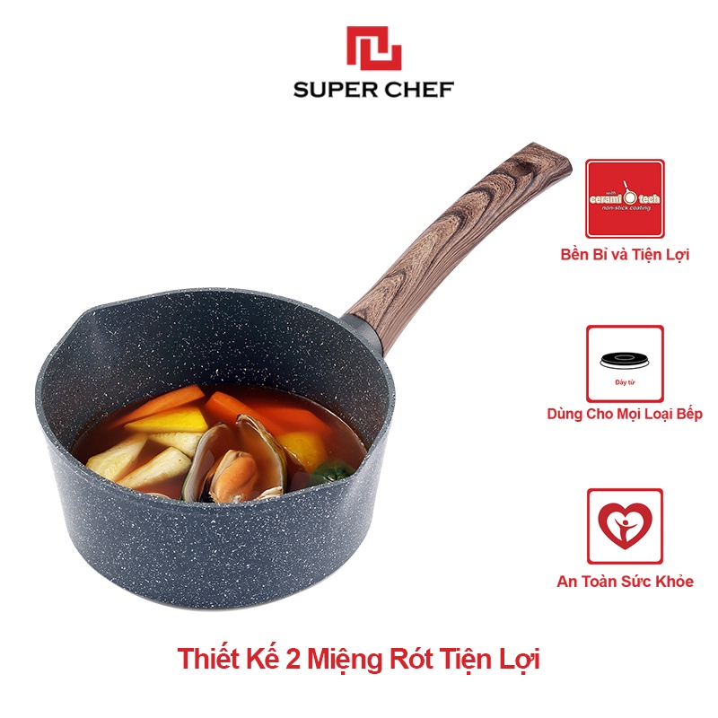 Nhà cửa & Đời sống > Dụng cụ nhà bếp > Nồi || [Mã BMBAU50 giảm 7% đơn 99K] Nồi Cán Dài/ Quánh Vân Đá Super Chef Dày 4mm Siêu Bền Bỉ, Tiện Lợi (16-18-20)Còn hàng